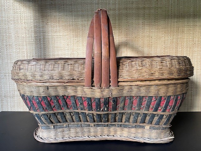 This authentic object of very high quality, a wooden basket from Chinese craftsmanship. It dates from the mid-20th century and is not a replica. Handmade and made from several carefully assembled pieces of wood, it is a unique and rare item. Used by Chinese peasants to transport products.