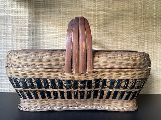 This authentic object of very high quality, a wooden basket from Chinese craftsmanship. It dates from the mid-20th century and is not a replica. Handmade and made from several carefully assembled pieces of wood, it is a unique and rare item. Used by Chinese peasants to transport products.