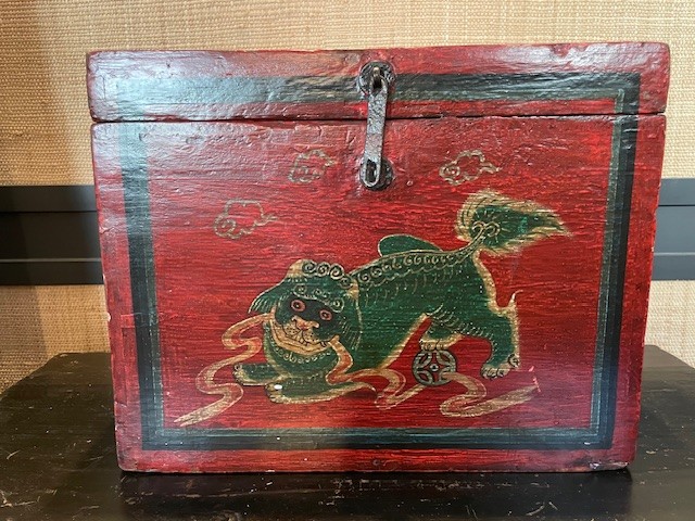 Antique Chinese wooden chest from the mid-20th century. This is not a replica but a genuine item.
